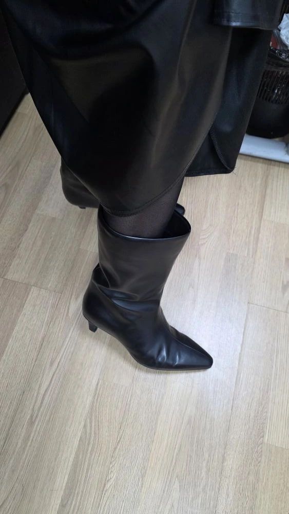 Голенище — прямое, смотрится изящно и при этом практично: легко надевать и снимать даже без молнии. Гармонично подходит и на узкую, и на более широкую голень.