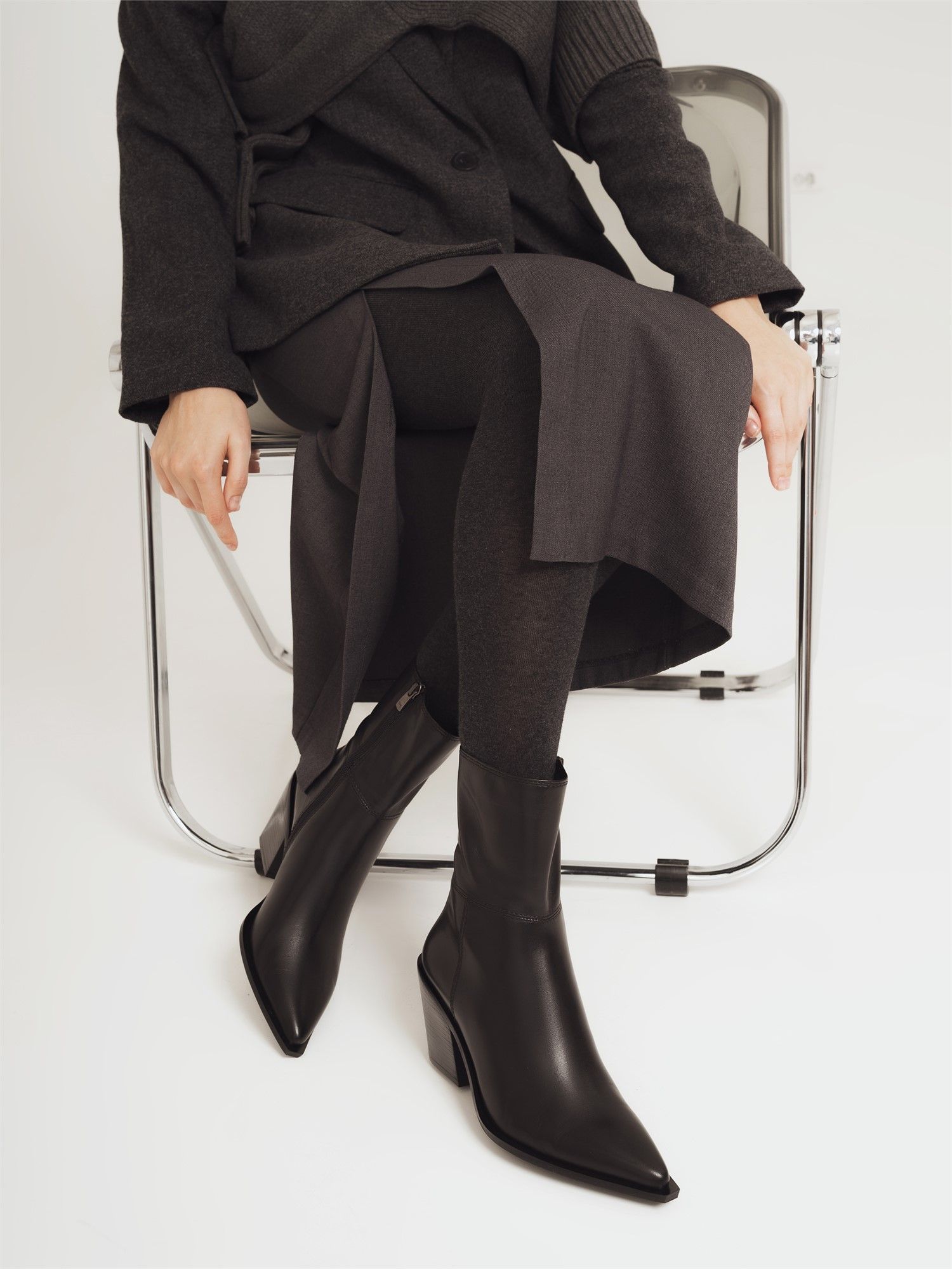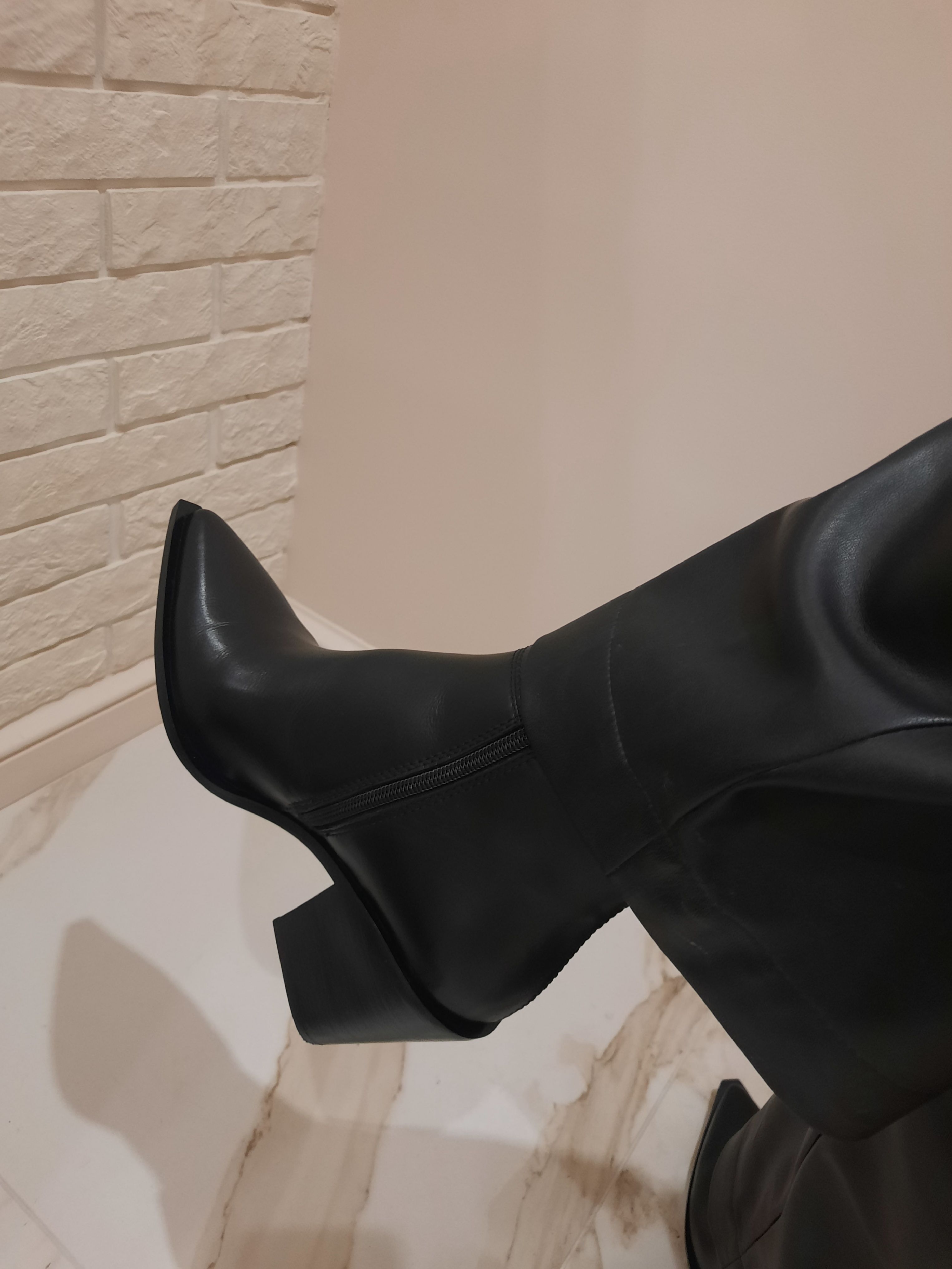 Несмотря на высоту, колодка выверена до миллиметра — и каблук ощущается удивительно комфортным. Голенище мягко обнимает ногу, сидит как вторая кожа и подчёркивает стройность силуэта.