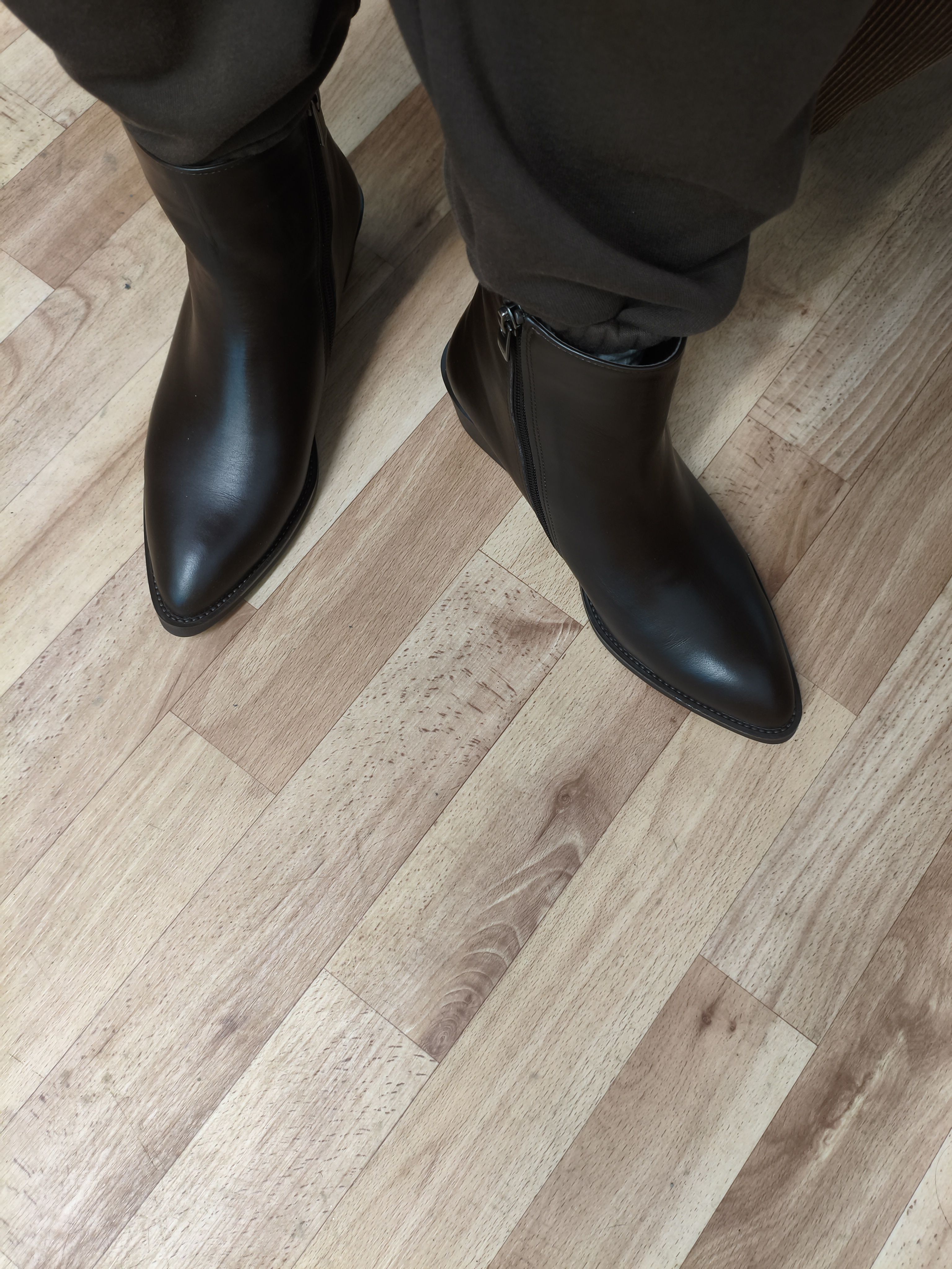 Получила сегодня ботиночки, качество конечно как всегда отличное, кожа мягкая, цвет вкусный шоколад, на ноге сидят комфортно, возможно придётся либо носочки одевать либо вторую стельку, чуть свободные...каблук вообще не ощущается...посмотрим как будет в носке, а пока как всегда все устроило